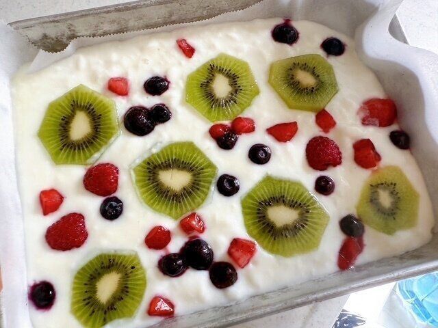 これでできあがり!色も鮮やかでキウイとベリーの酸味も爽やかでとても美味しいです。