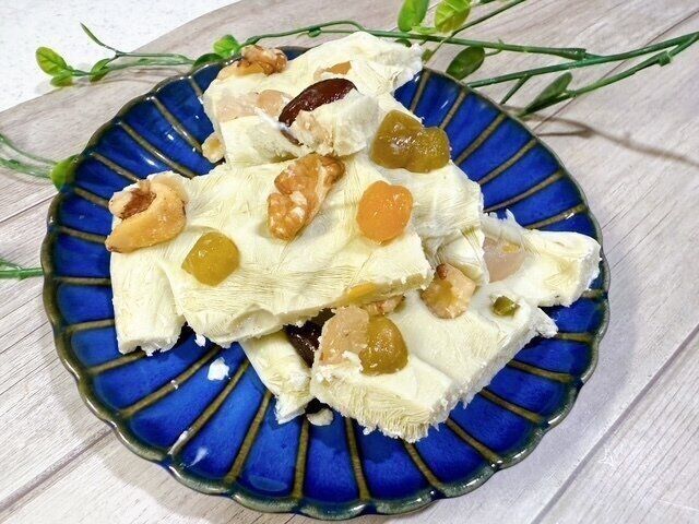和の素材で統一したのでどれも相性が良く、とても美味しいです。抹茶もほんのり感じられるのでおとなの味のヨーグルトバークなりました。