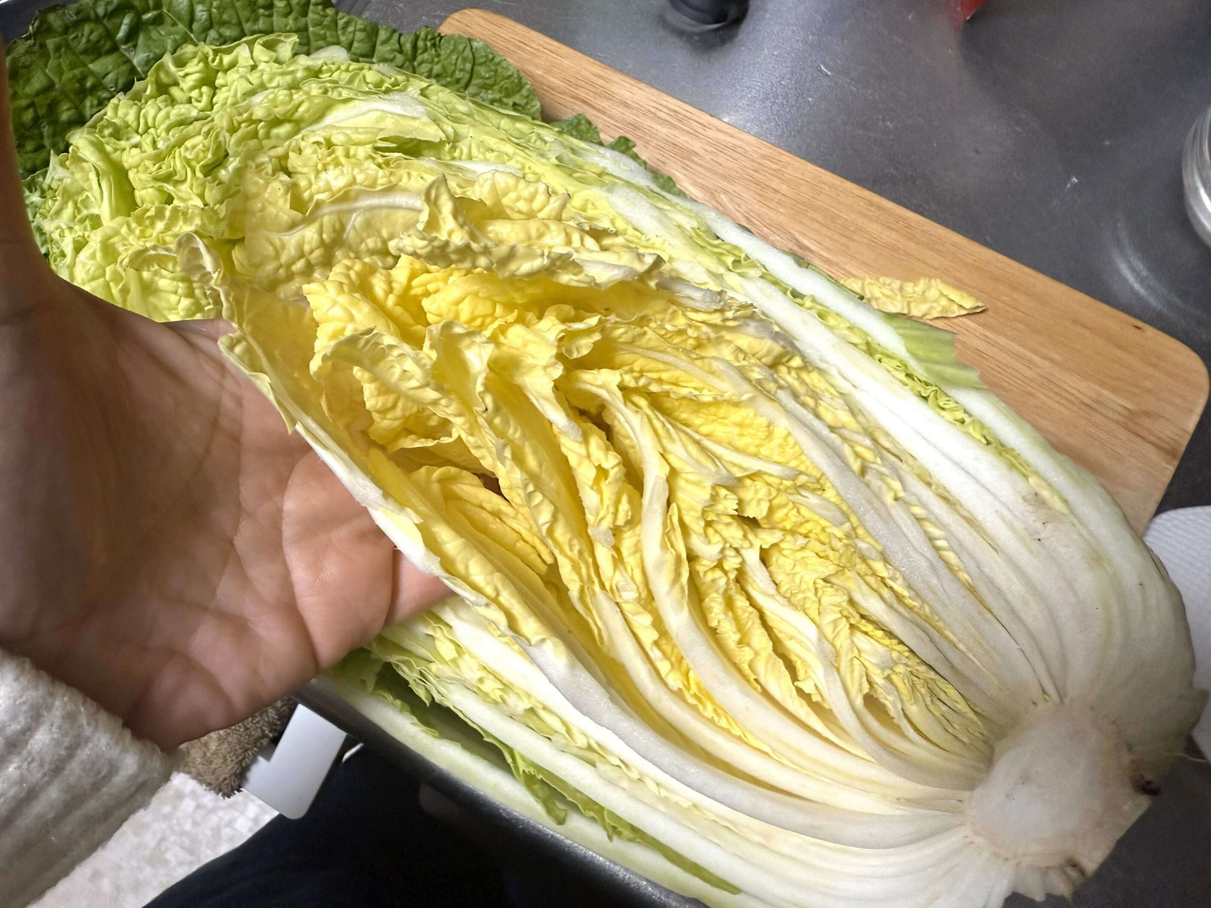 さっそく、スーパーで買ってきた1/4カットの白菜を、いつもと逆に「内側から」使ってみることに。