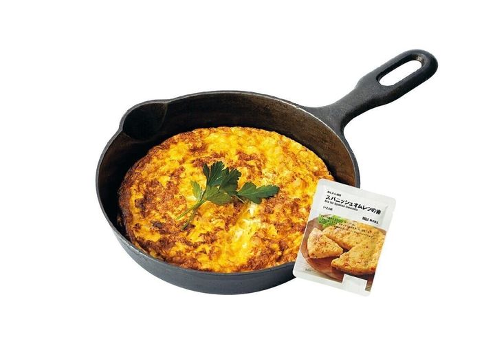 「あと一品欲しい~という日や、朝食に重宝。バターソース、じゃがいも、玉ねぎ、赤ピーマンなどが入ったオムレツの素を、卵と混ぜて焼くだけ!」。