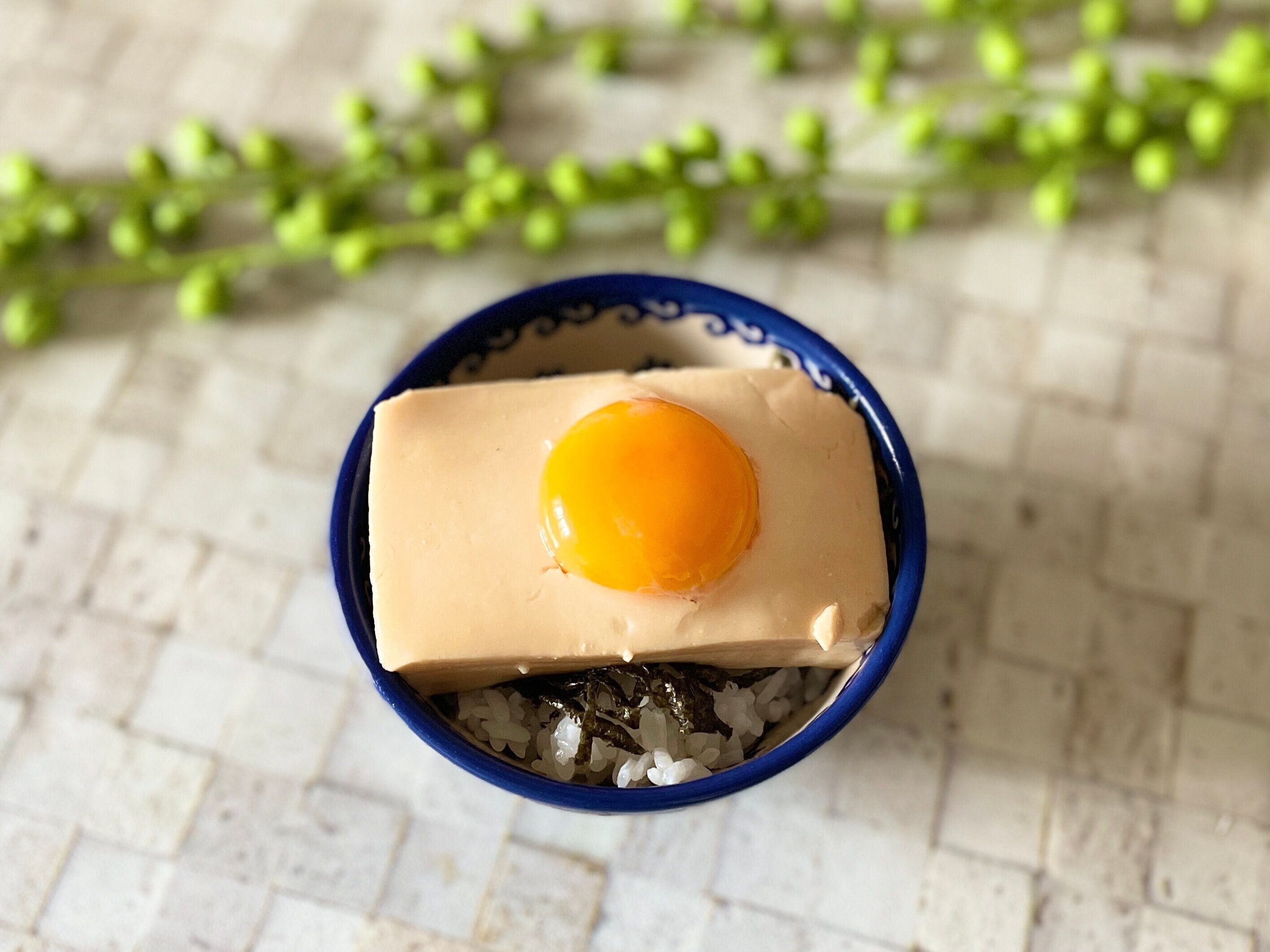 ご飯の上に海苔をかけ、めんつゆ漬け豆腐をのせて、さらに卵黄をのせ豆腐丼にするのもおすすめです。