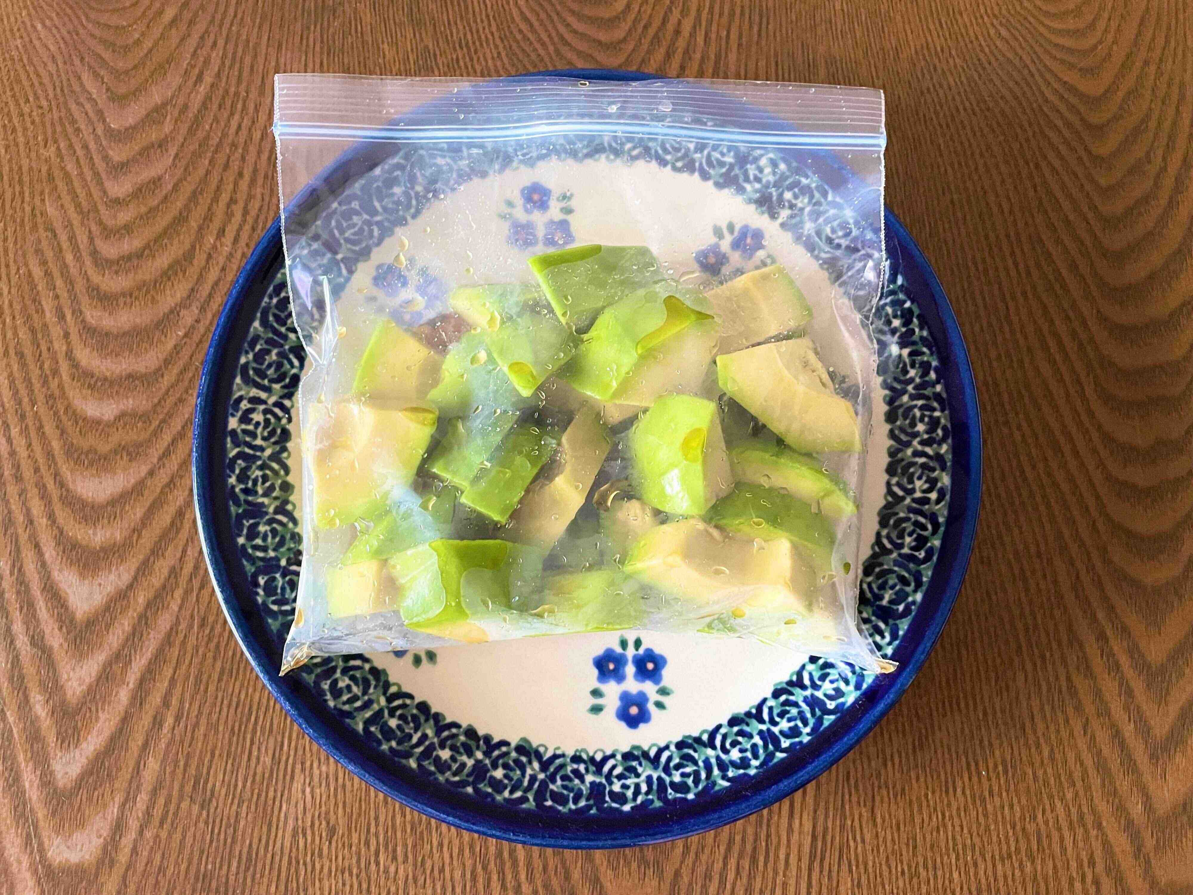 2.ポリ袋やジッパー付き袋に、めんつゆとアボカドを入れ、30分~1時間程度漬ければできあがり。