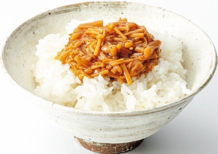 「つるんっとした、えのきの食感にピリ辛味がクセになる。モリモリごはんが進むので、夏の食欲が落ちる時季にも重宝します」。