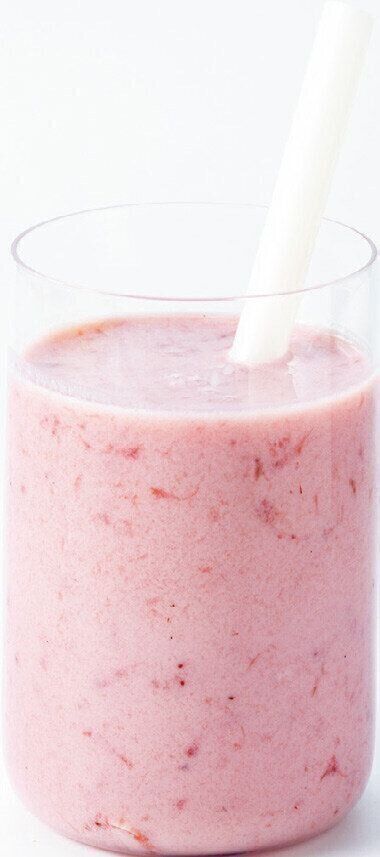 「果肉感あふれるフレッシュな味わいでとにかくおいしい!まるでカフェで飲むいちごミルクの味。かき氷やアイスにかけてもGOOD!」。