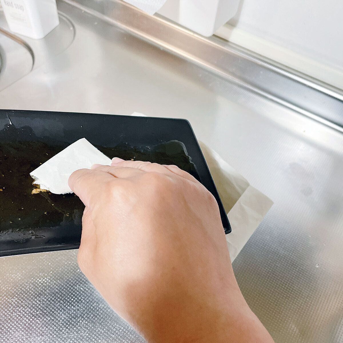 丈夫な紙なので、油汚れもしっかり拭き取ることができます。
