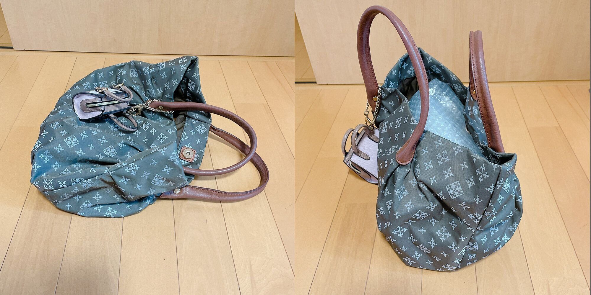 自立しないバッグの詰め物として入れておけば、倒れてしまうストレスがなくなります。