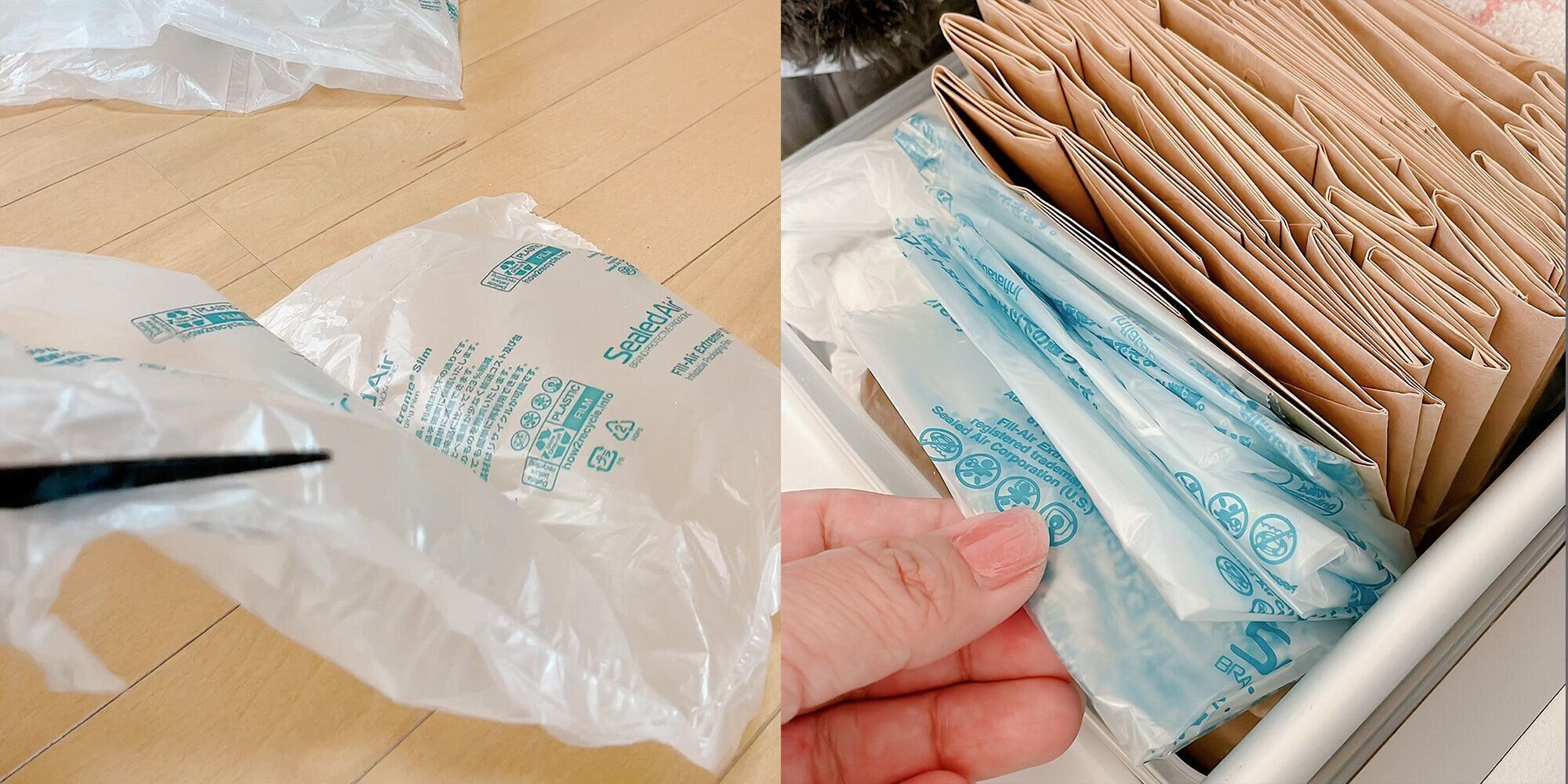 エアー緩衝材もバッグなどの詰め物にも使えます。