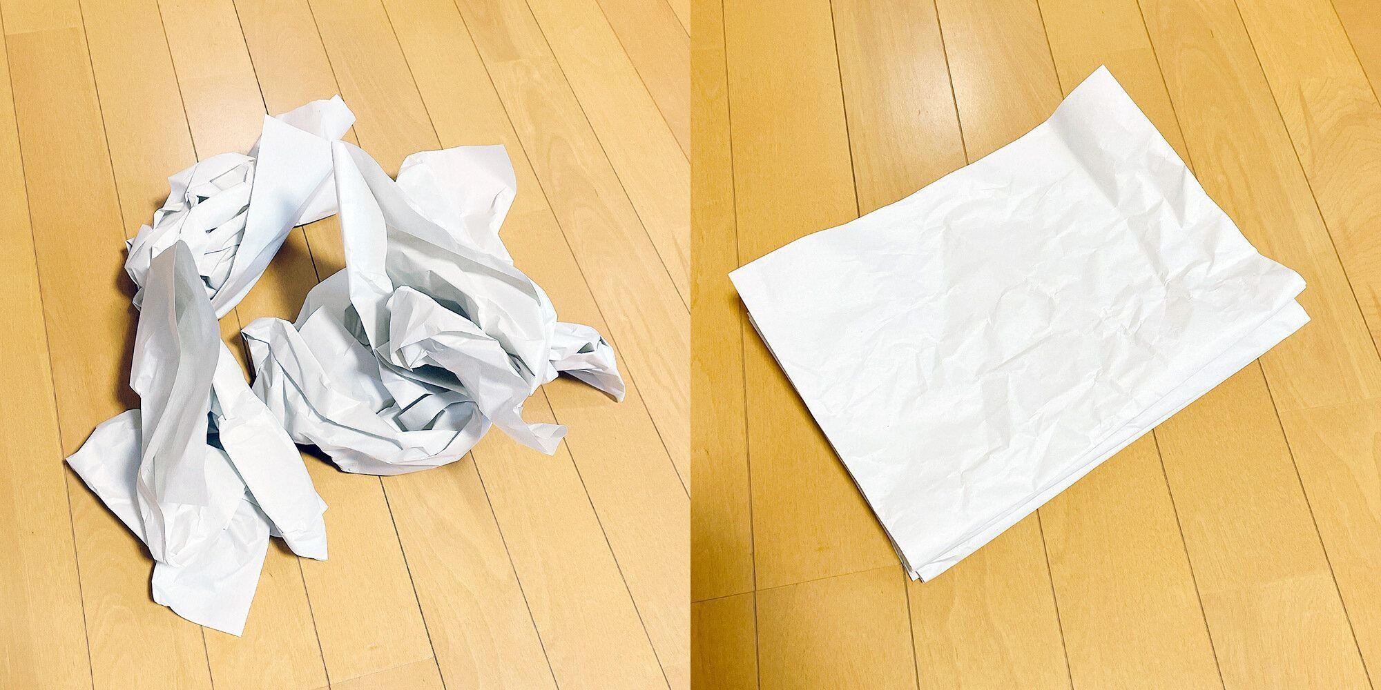 わざわざ新しい紙を使っているので、広げればしわはあってもきれいな紙です。