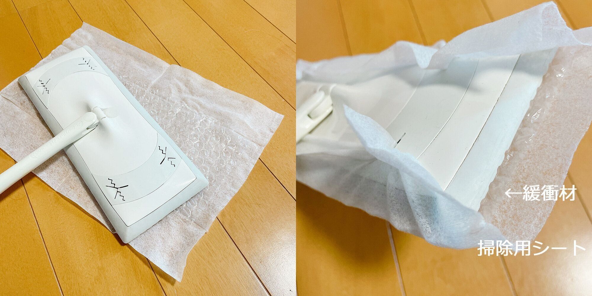 大きなシートがあれば、ダンボール底面に敷いて中身全体をくるむこともできます。