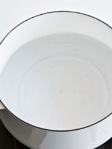 ゆで汁のアクをすくい、水200mlをたして強火で温める。