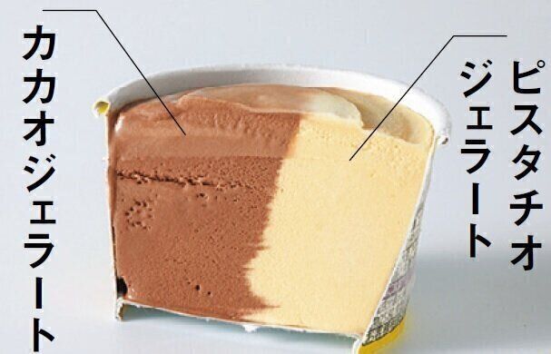 20年に登場して以来、夏の定番に。2種類のフレーバーが楽しめるダブルカップ構造で、各味を楽しんだら混ぜて「練り食べ」を!