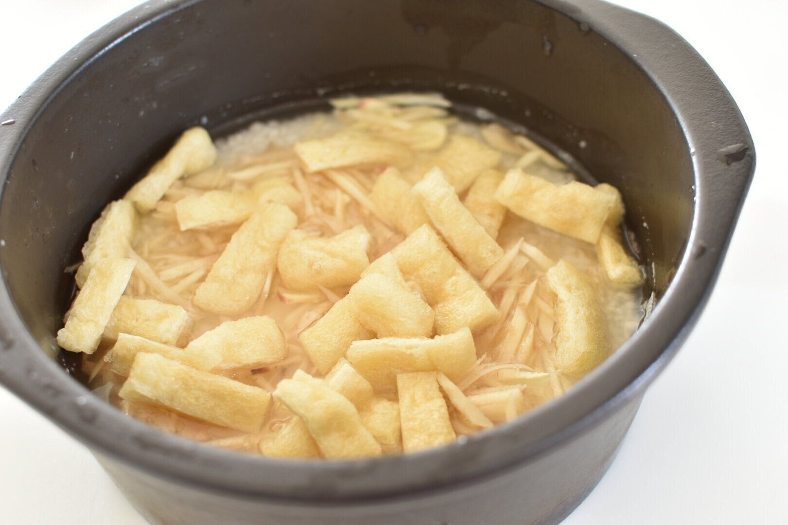 3.千切りにした新しょうがとカットしたうす揚げをのせたら通常通りに炊飯する
