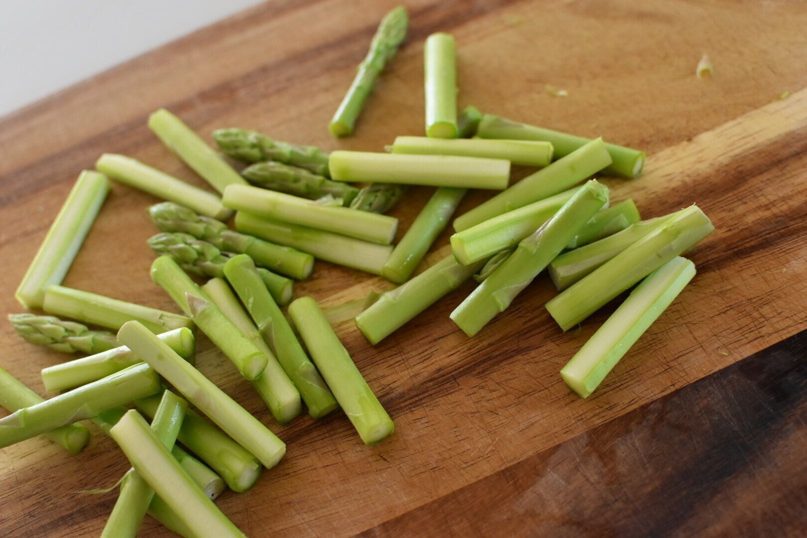 ・アスパラガスの根元1/3の皮をピーラーでむき、サイズをそろえてカットしておく