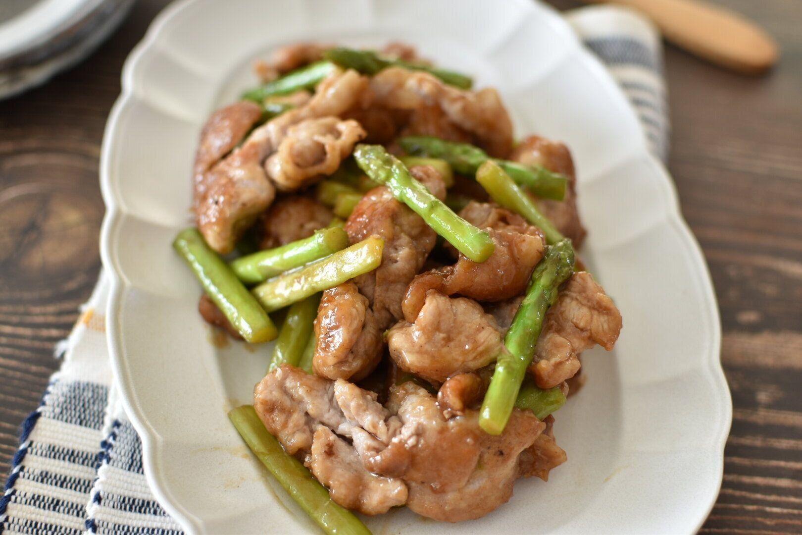 ほんのり甘さのあるアスパラガスと、カリカリに焼けた豚肉の香ばしさがよく合います。