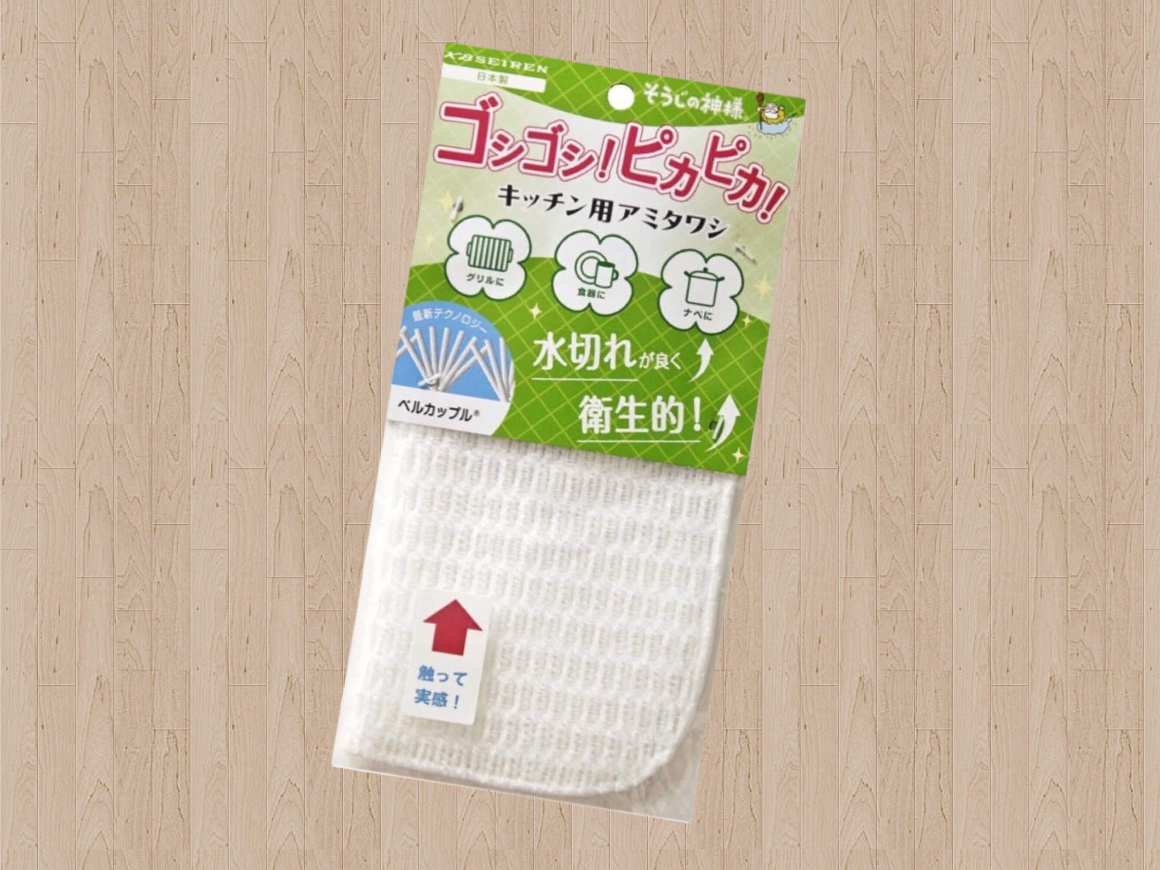 特殊な細かいブラシがついたメッシュクロスは、薄型なので凹凸があるところの掃除がラク!メッシュなので水切れもよく、衛生的です。我が家は、キッチンで使用した後の「お下がり」をお風呂の蛇口に使っています。