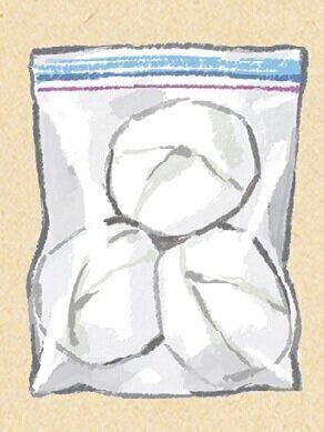 へた側の身は硬く、いたみにくいため下にする。キッチンペーパーで包み、ポリ袋に入れて保存。