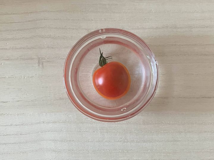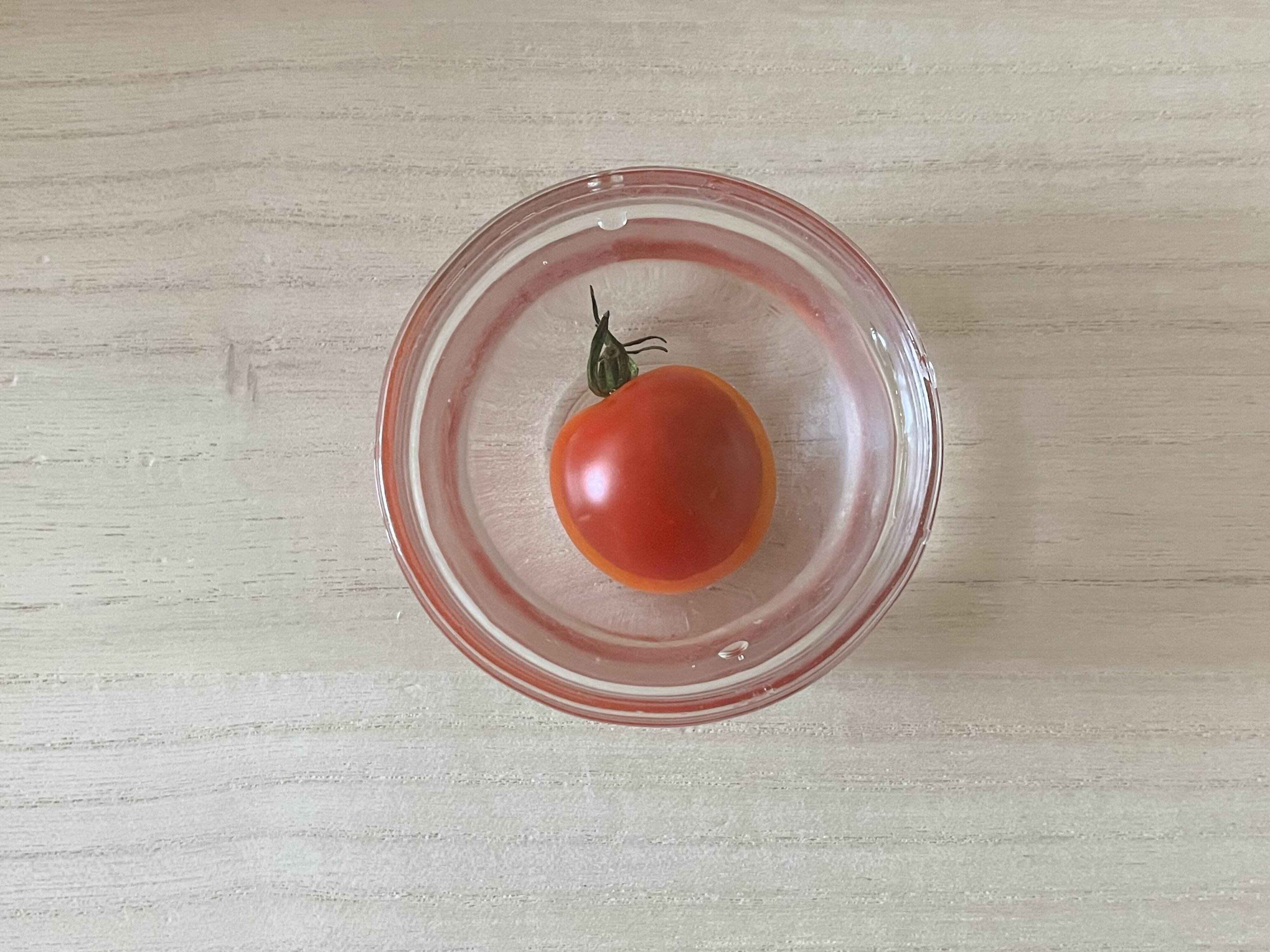 50℃のお湯に10秒間ミニトマトを入れてみました。