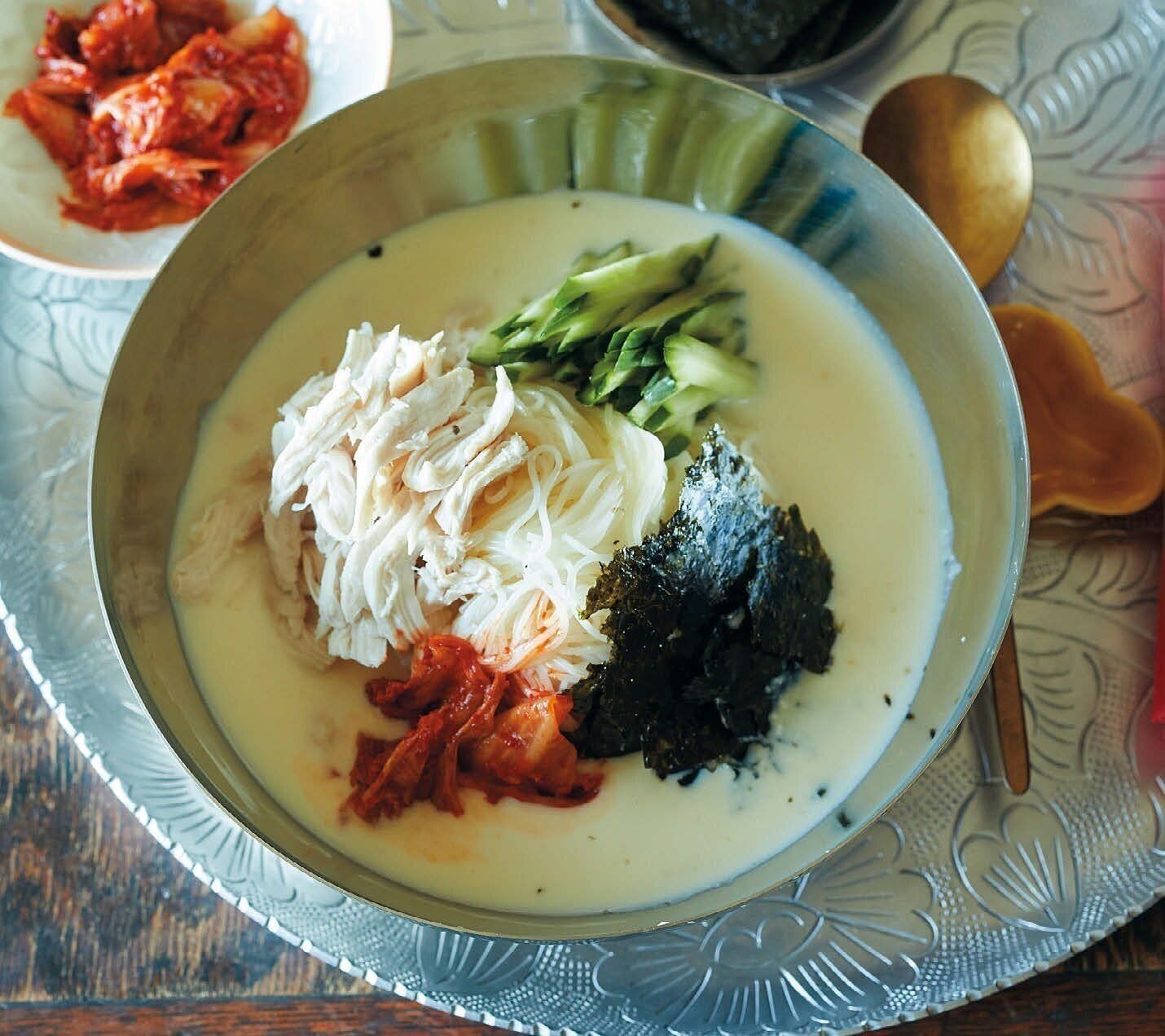 冷たい豆乳で麺を食べる韓国料理。あっさりクリーミーで、つるつるイケる!