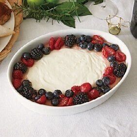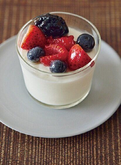 (3)ミックスベリーとはちみつを混ぜて(2)に飾る。
