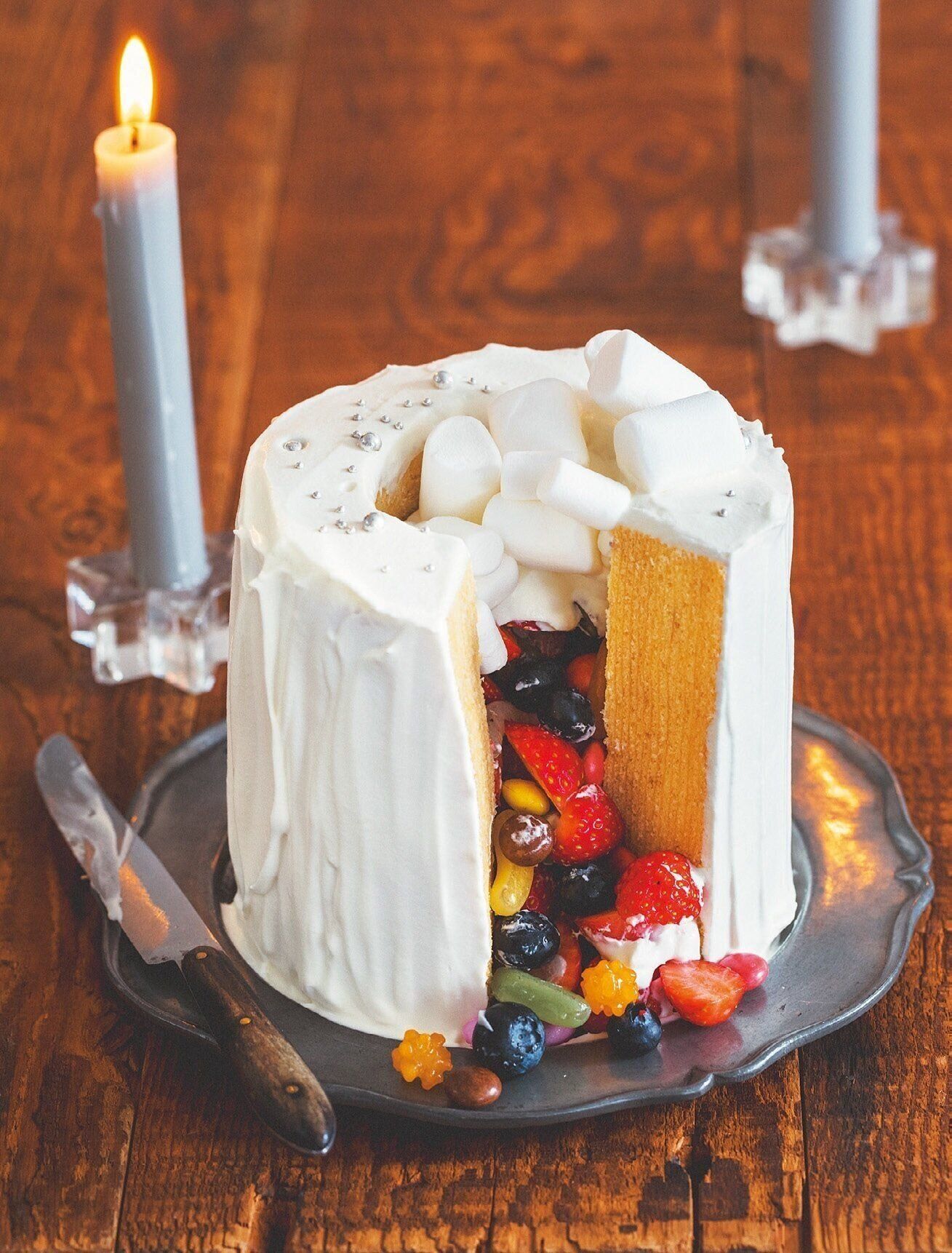中にはベリーとお菓子がぎっしり。大歓声間違いなし!きらきらベリーケーキ