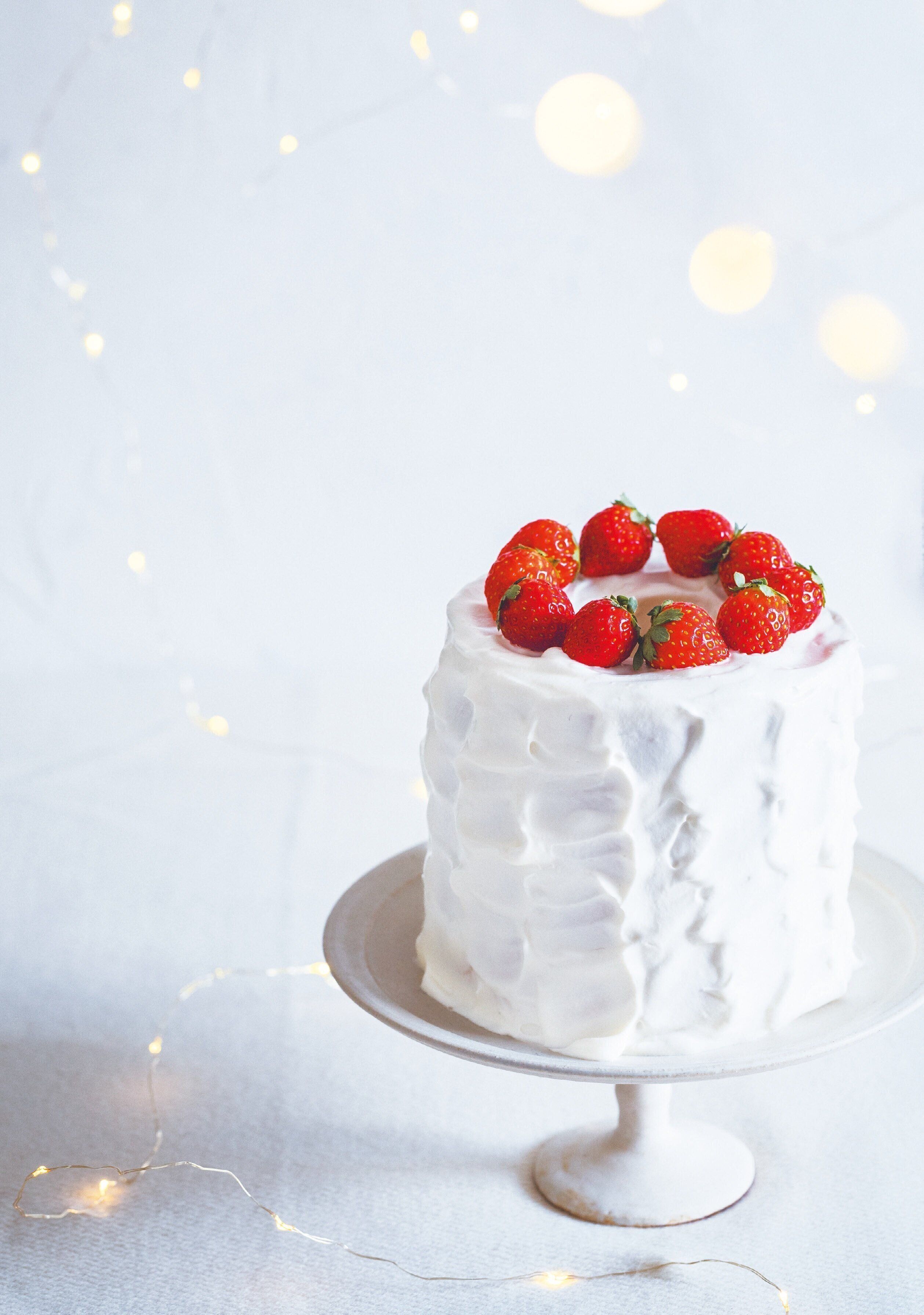 クリームを塗ったら、いちごをのせるだけ!ホワイトストロベリーケーキ