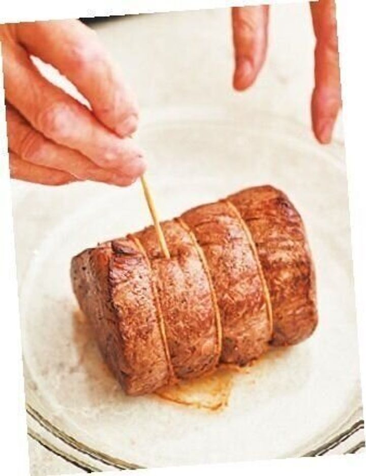 ※牛肉につま楊枝や竹串を刺して、透明か薄いピンクの肉汁が出れば焼き上がり!