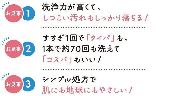 処方改良により皮脂汚れ・油汚れへの洗浄力の高さはそのままに、既存のユーザーから要望の多かった食品汚れにも強くなりました!