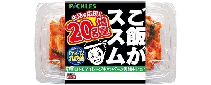 「ご飯がススムキムチ」の特徴は、なんといっても辛さが控えめなところ。そのヒミツは、りんご果汁と魚介のうま味。甘みがあって濃厚な味わい、辛い物が苦手な子どもも家族みんなでおいしく食べられるんです。また、独自の植物性乳酸菌Pne-12(ピーネ12)を配合。このPne-12は、植物性乳酸菌の中でもとくに胃酸に強く、腸まで生き抜くことができるといわれている乳酸菌です(※)。