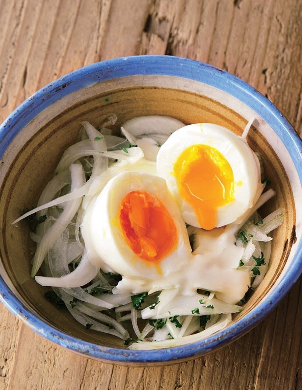 新玉ねぎと半熟卵のサラダ