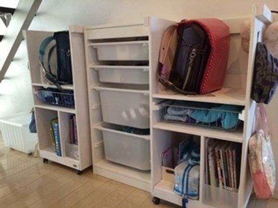 朝の準備も自分でできるように必要なものは一箇所にまとめています。重要なのはまとめる場所をドコにするか。ランドセルは玄関と宿題をする場所から近いところ、保育園の場合はお着替えも必要なので洗濯物を管理する場所の近くに設置。しまう動作もお子さん自身にさせ、記憶に残します。