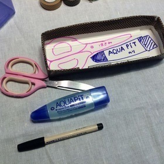 サンキュ!ブロガーの暮人さんはお子さんのお道具箱に牛乳パックで仕切りを作ってあげています。仕切りの底に一工夫。道具を型取った絵が描かれていて、あとはパズルのように絵の上に道具を置くだけです。型取りはお子さんが担当。自分でやることで記憶にも残りますね。