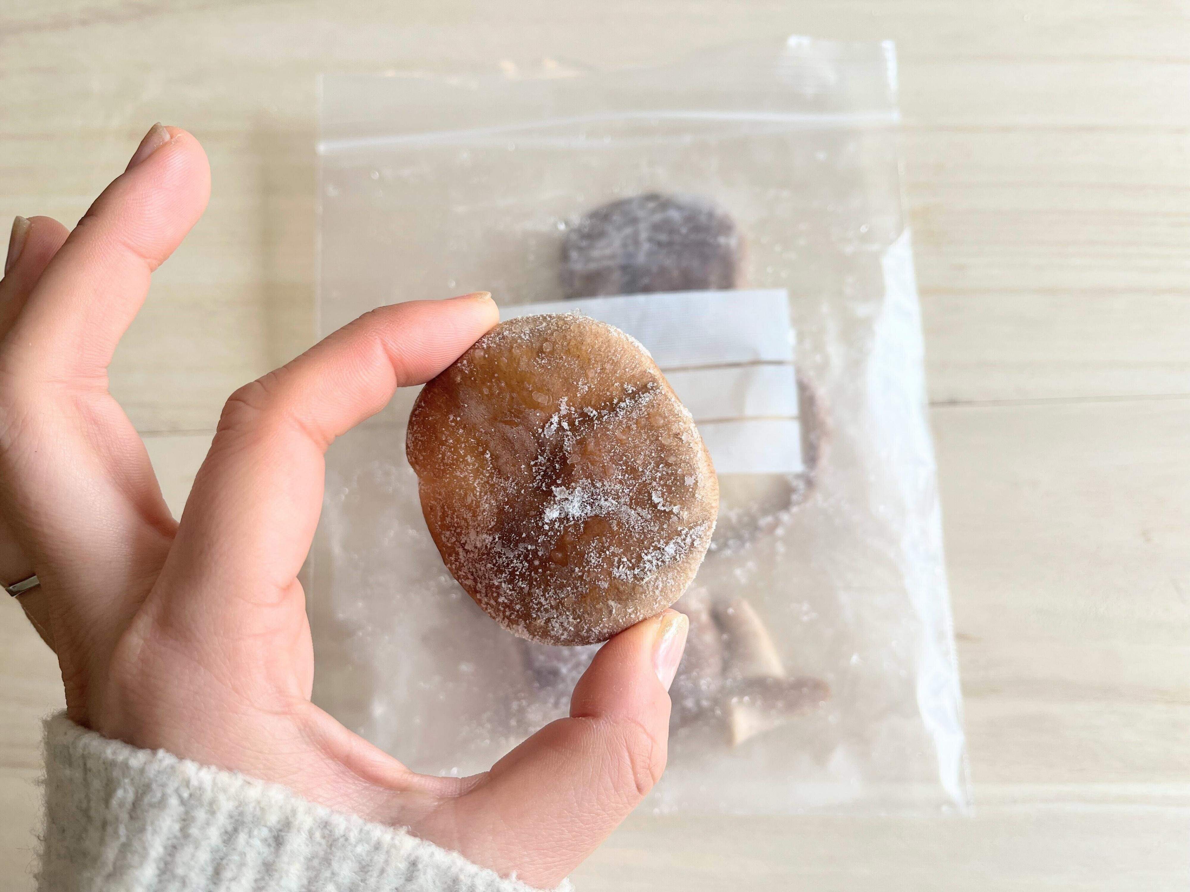翌日、冷凍庫から取り出してみると、椎茸同士はくっつくことなくバラバラなまま保存できていました。