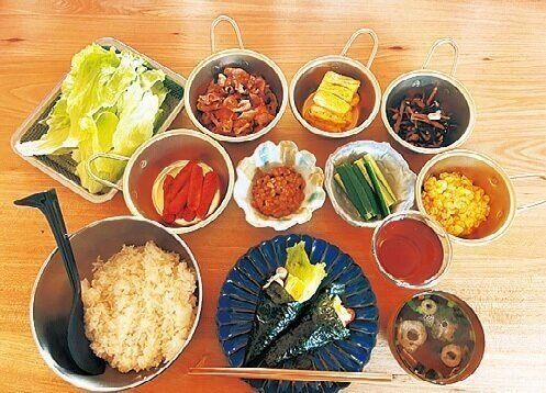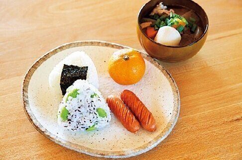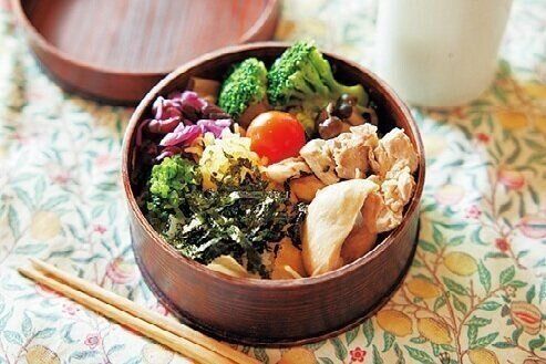 朝食のおにぎりは、ふりかけで手軽に味も見た目もチェンジ。「おべんとうは蒸した肉や野菜が基本。ピンクソルトやトリュフ塩など、ちょっといい塩で気分をアゲています!」。