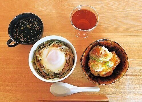ツナたま丼、冷凍カット野菜を使ったかぼちゃのチーズ焼き、わかめスープ