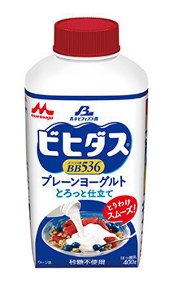 今回、使ったのはコレ! 「ビヒダス プレーンヨーグルト」にかけるタイプがあるのはご存じですか? 「ビヒダス プレーンヨーグルト とろっと仕立て」。すっぱさを抑えているというこちらのヨーグルト、まろやかで食べやすい味です(*^_^*)