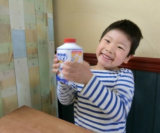 シャカシャカ!!と、ふたを開ける前にヨーグルト1パックをシェイク!!