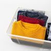 シーズンオフの洋服を収納ケースにしまうときには、立てて収納するのがおすすめです。平らに重ねて収納すると、下の方になった洋服が重みで型崩れしたり傷んだりすることがありますが、立てて収納すると、洋服が探しやすい上に取り出しやすくなり、傷みも防げます。生地が柔らかい洋服は崩れてきてしまうことがありますが、その場合はケースやブックエンドなどを使って、仕切りを作り、立てられるようにしましょう。