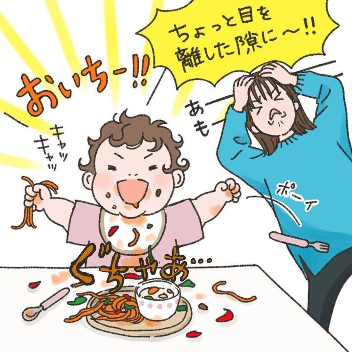 子どもがごはんを食べている最中、ママがちょっと目を離すってことありますよね? ものの数秒間で、子どもが盛大に食べこぼしてしまうことも…。目を離した自分が悪いと思いつつ、でも汚れた衣類を目の前にして、ついつい気持ちはカッとなってしまう。そんな自分を後で責めて落ち込む毎日…。
