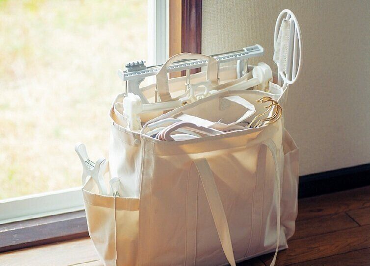 ハンガーやピンチハンガー、洗濯ばさみなどがコンパクトに。「収納力がすごいし内バッグや仕切りがあるので、洗濯を干す作業も劇的スムーズ」。