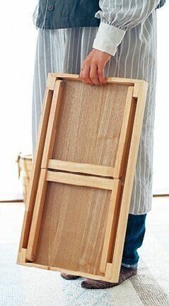 軽くてたためるので、屋外でも屋内でも大活躍。「トレー部分は滑り止め付きで、ソファやベッドの上で使用しても安心です」。