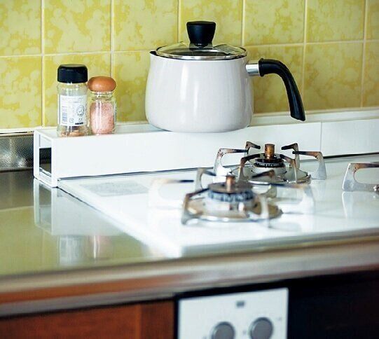 魚焼きグリルの排気口の長さに合わせて伸縮可能(44.5~82cm)。「排気口に汚れが付くのを防げて、掃除がラクに。調味料や鍋を置くのにも便利」。