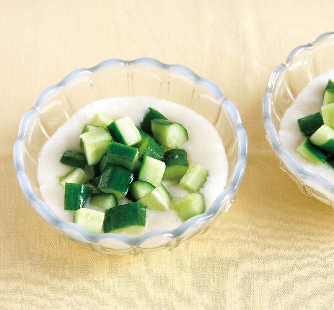 きゅうりは縦四つ割りにして幅1cmに切る。長いもはすりおろし、[A]を加えて混ぜる。器に長いもを盛り、きゅうりをのせる。