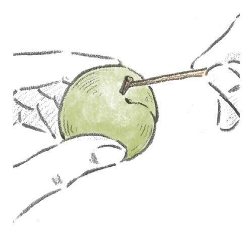 (1)梅の水けを丁寧に拭き、フォークで3~4カ所刺して穴をあける。