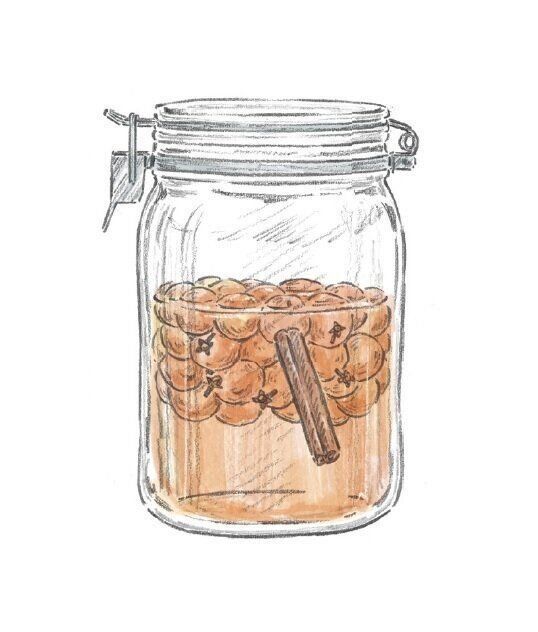 上の「きほんの梅シロップ」と下準備と作り方は同じ。氷砂糖を入れるタイミングでスパイスやレモンを入れる。