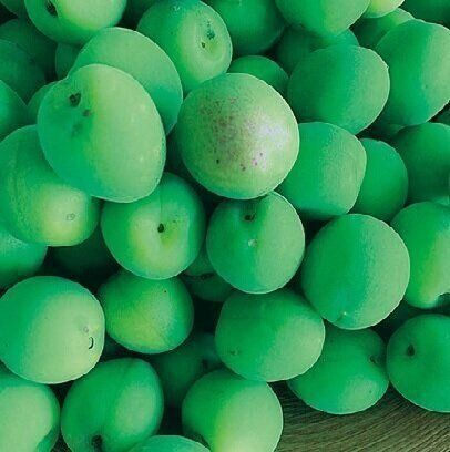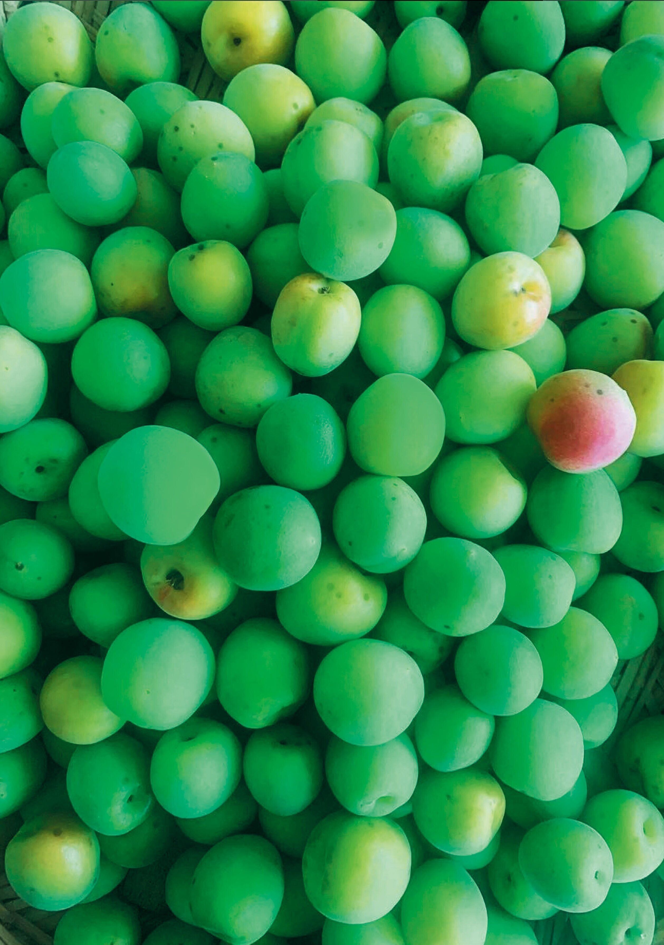 熟す前に収穫された若い梅。梅の出回り始めにお店に並ぶ。さわやかな香りとみずみずしい酸味が特徴。梅シロップや梅酒に向いている。