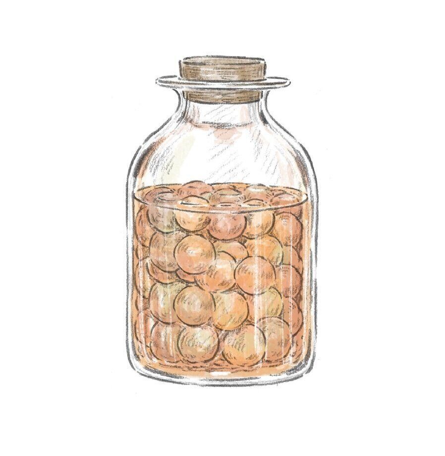 (3)直射日光の当たらない常温の場所で、氷砂糖が溶けるまで時々揺すりながら3カ月ほどおく。