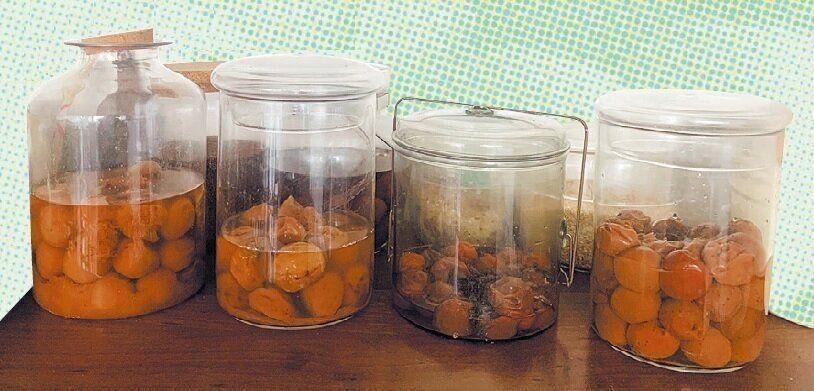 梅の果肉に含まれたエキスがシロップやお酒に出ていくことで、梅にシワができます。だからシワは梅の勲章!青梅はシワシワになりやすく、完熟梅はなりにくい傾向があるようです。