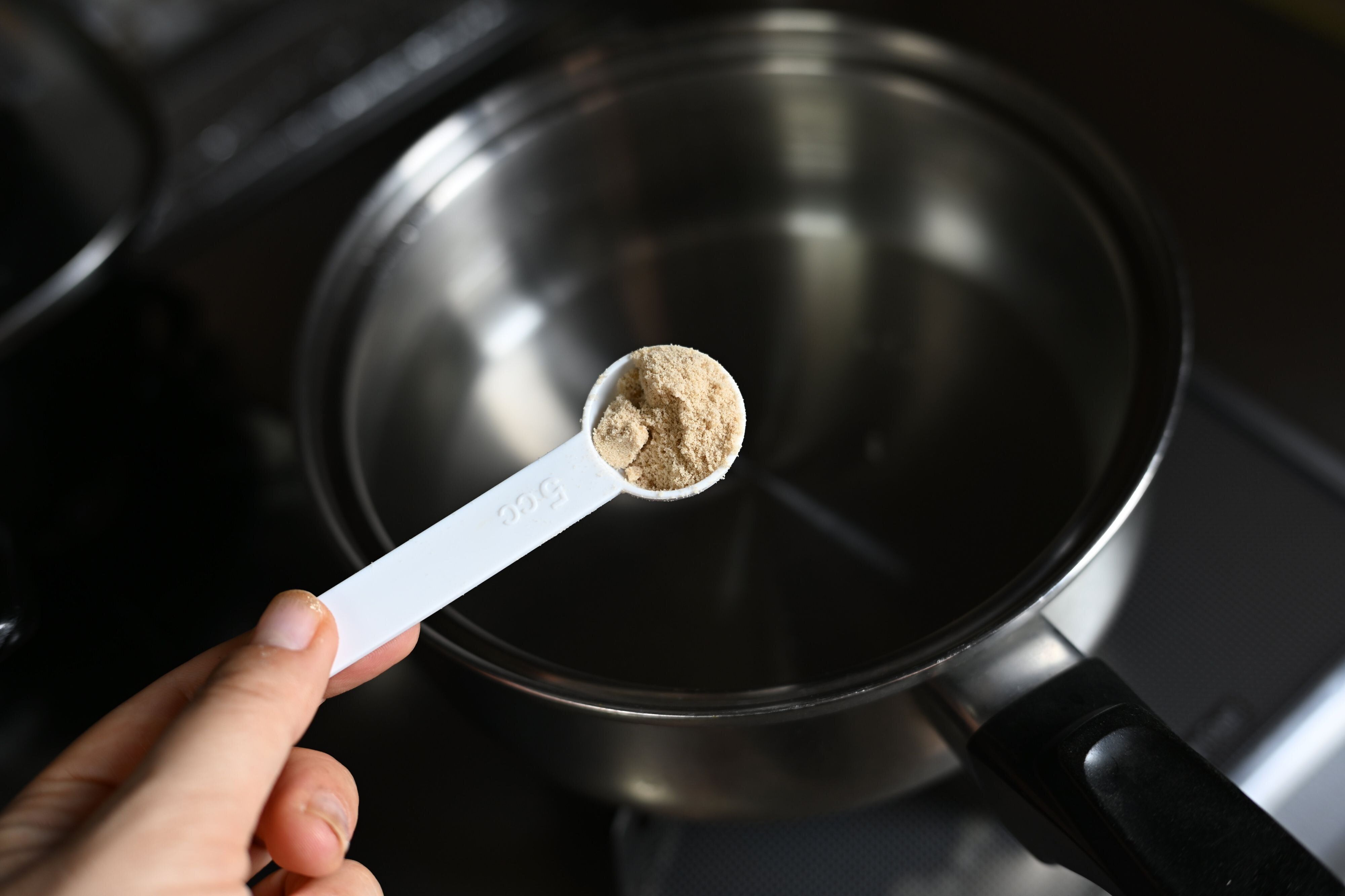 たっぷりの水を入れた鍋をコンロをおき、加熱。沸騰後、さやから取り出した枝豆と、水に対して塩を2%と砂糖を2%しっかり量って投入!