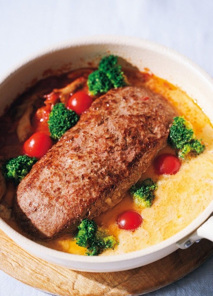 フライパンの空いている所の1カ所に[B]を入れて中火でさっと炒め、[C]を加えて2~3分煮る。もう1カ所の空いている所に[D]を入れ、ピザ用チーズが溶けるまで混ぜる。あればレンチンした冷凍ブロッコリー、ミニトマトを添える。