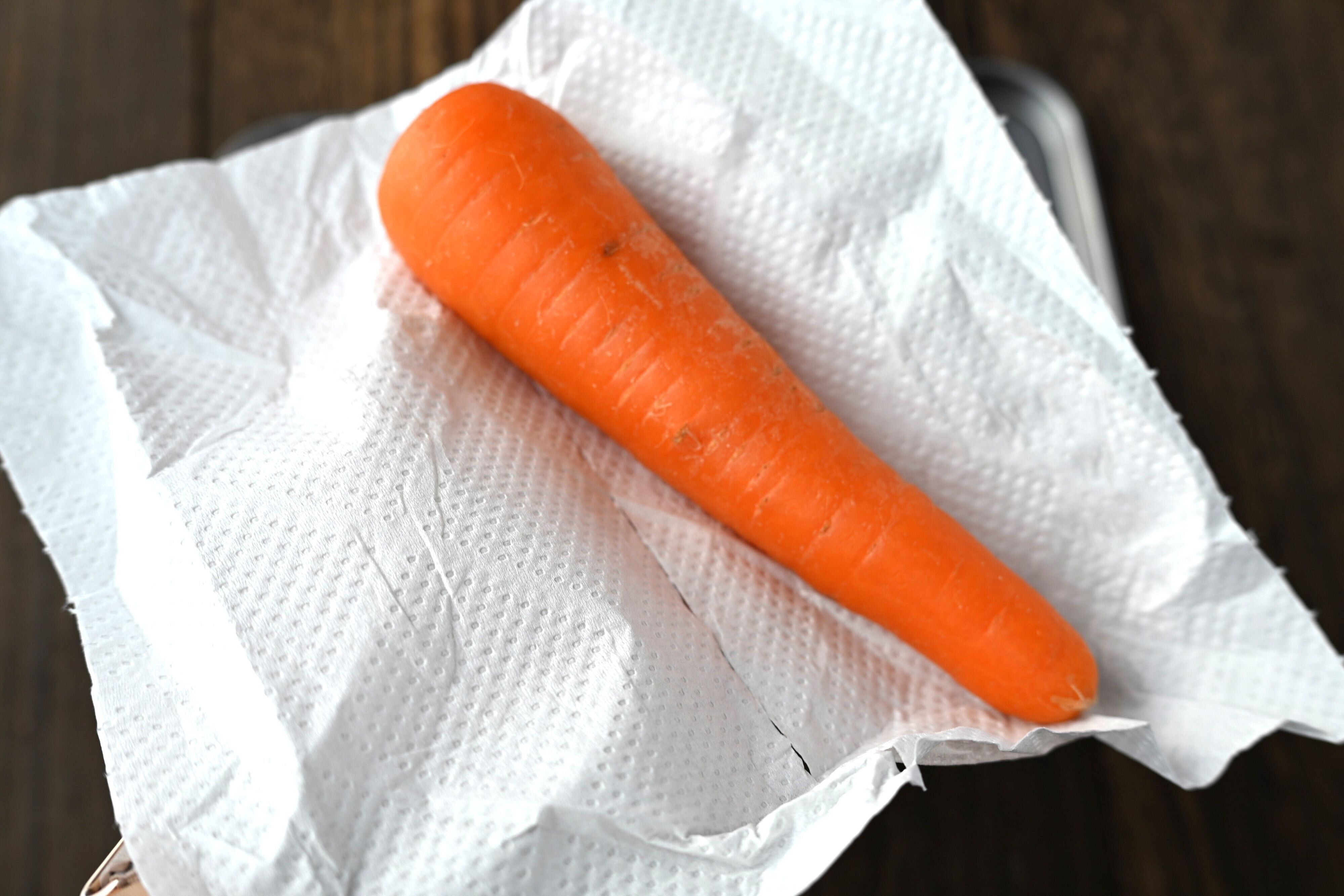 傷んでしまうと、おいしく食べられないだけでなく、食品ロスにつながりかねません。購入後、すぐに調理しないにんじんを保存する際は、キッチンペーパーに包んでおく。それだけで長持ちするならやらない手はありませんね!